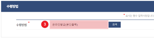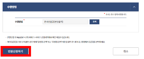 3. 수령방법을 선택한 후 "민원신청하기" 를 클릭합니다.