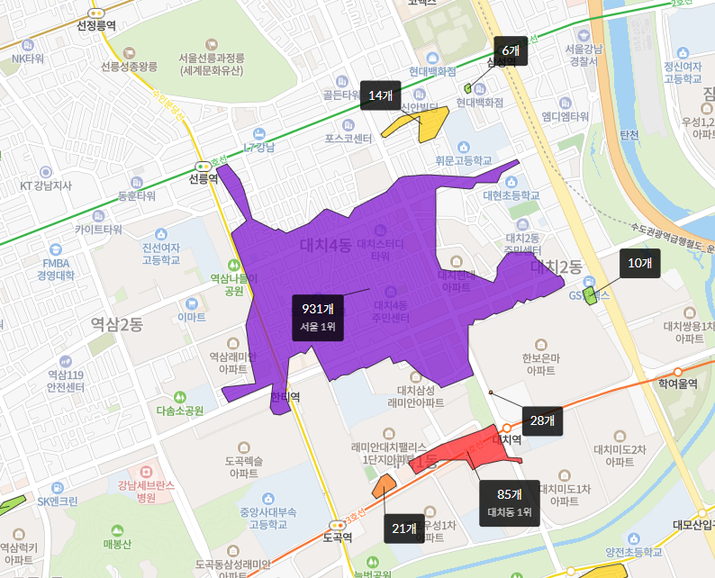 - 학군 : 학군 또한 S급 입지입니다. 초등학교는 대현초(316m)가, 중학교는 휘문중(322m), 대명중(360m), 단국대학교사범대학부속중(834m)가, 고등학교는 단국대사범대학부속고(897m), 진선여고(1.2km), 중앙대사범대부속고(1.4km)가 있으며, 대한민국 사교육의 중심지 대치동 학원가가 단지를 둘러싸고 있어 최고의 면학 분위기를 조성하고 있습니다.