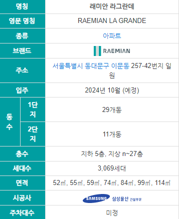 래미안 라그란데는 이문휘경뉴타운 재개발 사업 일환으로 지어질 대단지로 입지가 좋아 많은 사람들의 관심을 받고 있는 아파트이기도 합니다. 2023년 하반기 분양이 예정되어 있어, 미리 단지에 대해 알아보실 필요가 있습니다. 많은 사람들의 시간낭비를 줄여드리기 위해 분양가, 평면도, 입지분석 등 핵심사항만을 알려드리겠습니다.