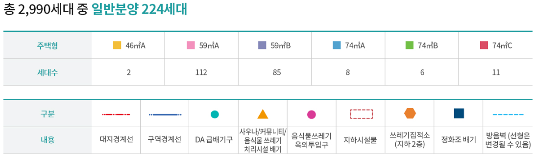 5. 단지배치도, 세대 및 평형, 평면도, 마감재 (로얄동 확인)