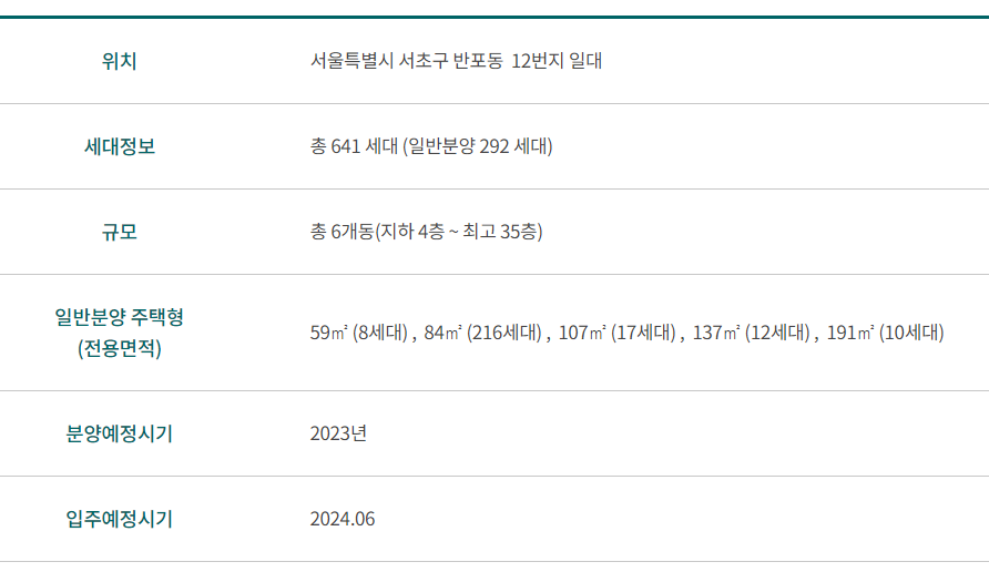 서울시 서초구 반포동 12번지 일대 소재지에 주택재건축정비사업 일환으로 지어질 단지입니다. 교통, 학군,상권, 자연환경, 호재 등 모든 요소를 다 갖춘 입지로 실거주하기에 손색이 없는 아파트로 올해 하반기 분양을 앞두고 있습니다.(물론 연기될 가능성도 있습니다.)