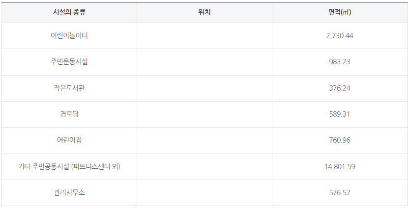 좋은 입지와 고급 단지에 걸맞게 주민운동시설, 작은도서관, 경로당, 어린이집, 놀이터, 피트니스 등 다양한 주민편의시설이 들어올 예정입니다.
