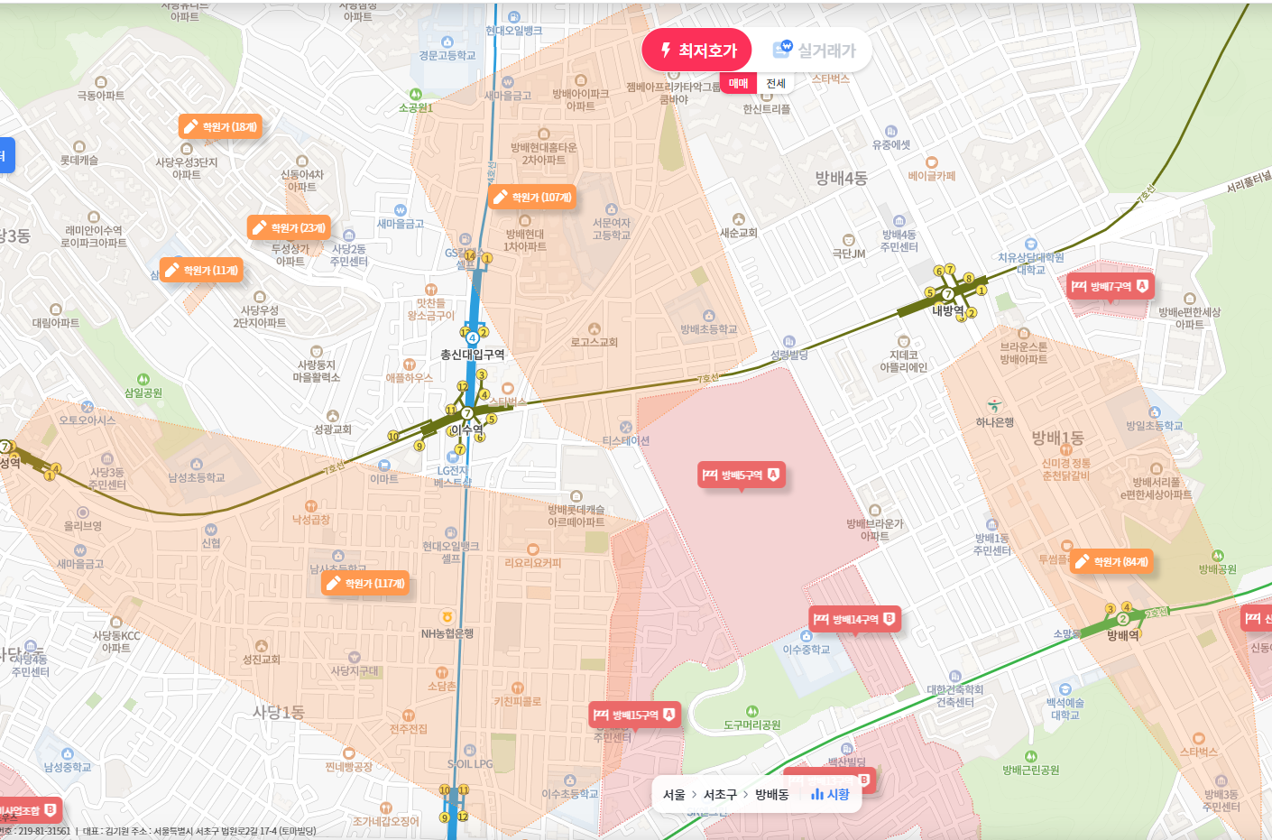 - 전통적으로 고급 주택단지들이 모여있는 방배동은 서초구에서 가장 비싼 동이었지만, 2000년대 중반 반포동 일대가 재건축 주택정비사업이 진행되면서, 반포동이 앞서게 되었습니다.