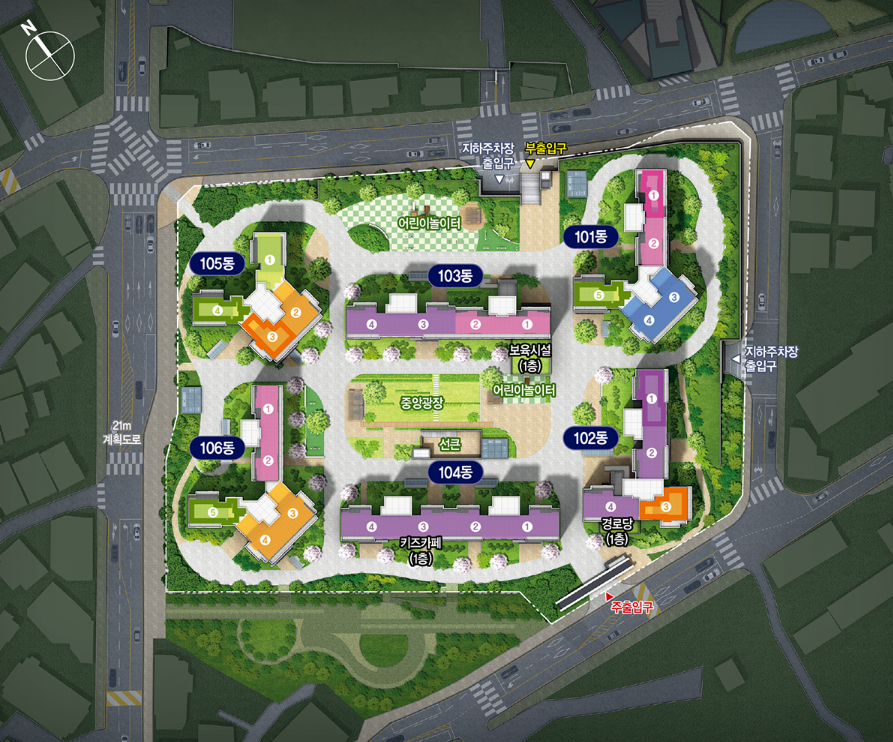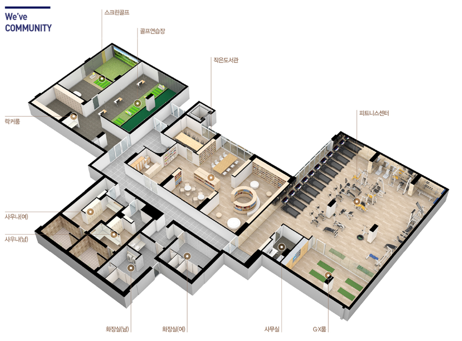단지 내 스크린골프, 골플연습장, 사우나 GX룸, 작은도서관 등 다양 주민 편의시설이 있습니다.