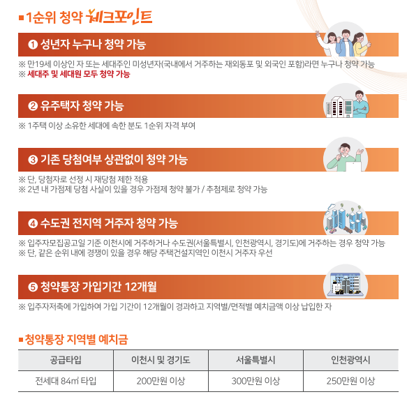 청약 신청 시 자격 미숙지로 인한 신청서 오기재 및 오류는 청약자 본인의 책임으로 귀속되므로, 반드시 청약자격을 확인하여야 합니다. 특히, 특별공급(기관추천, 신혼부부, 생애최초, 노부모부양, 다자녀)와 일반공급 청약 자격을 구분하여 확인하시기 바랍니다.