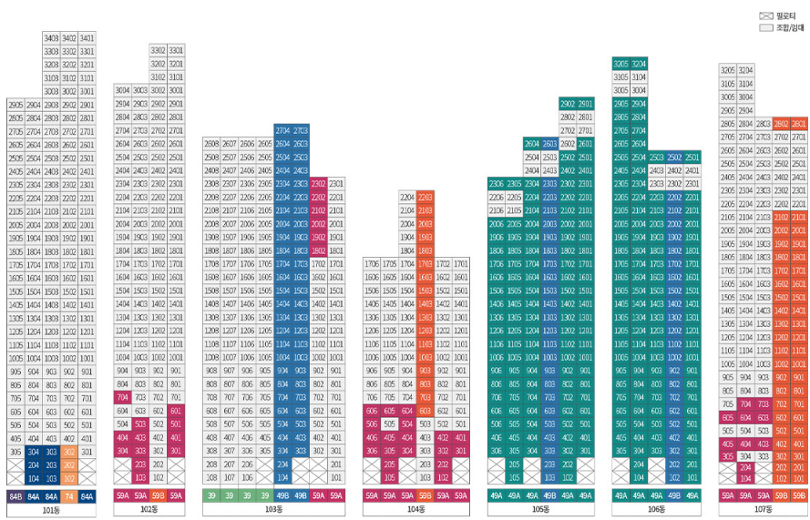 전용면적 | 세대수 | 최저가 | 최고가 |